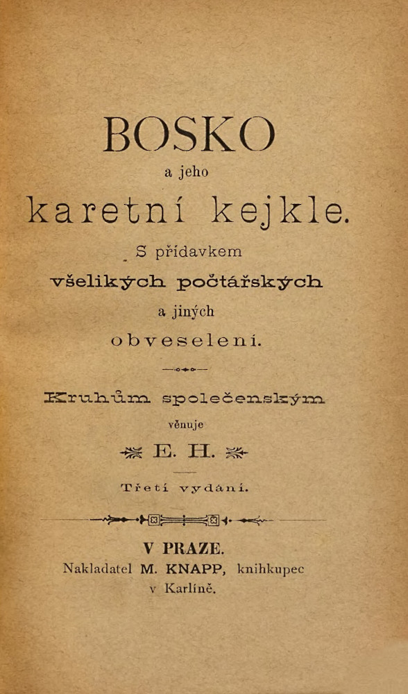 S přídavkem všelikých počtářských a jiných obveselení. Kruhům společenským věnuje E. H.