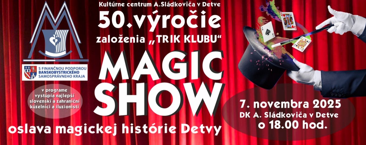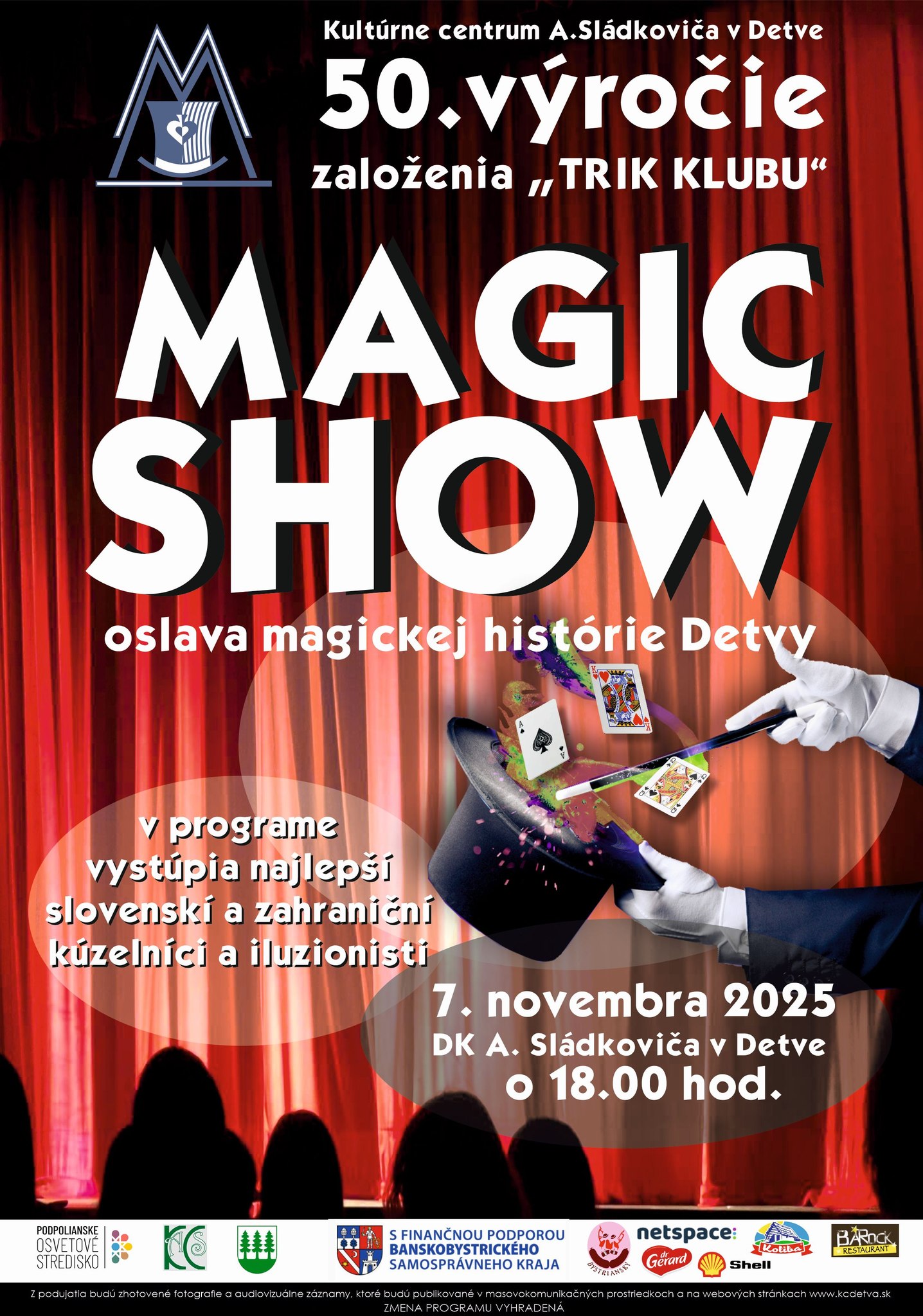V galaprograme predvedú svoje majstrovstvo, zručnosť a dôvtip pred výborným detvianskym publikom vybraní kúzelníci zo Slovenska a Českej republiky. Moderná mágia je ušľachtilá zábava, ktorá je založená na poctivej príprave, drile, šikovnosti interpretov a ktorá si vie získať publikum.