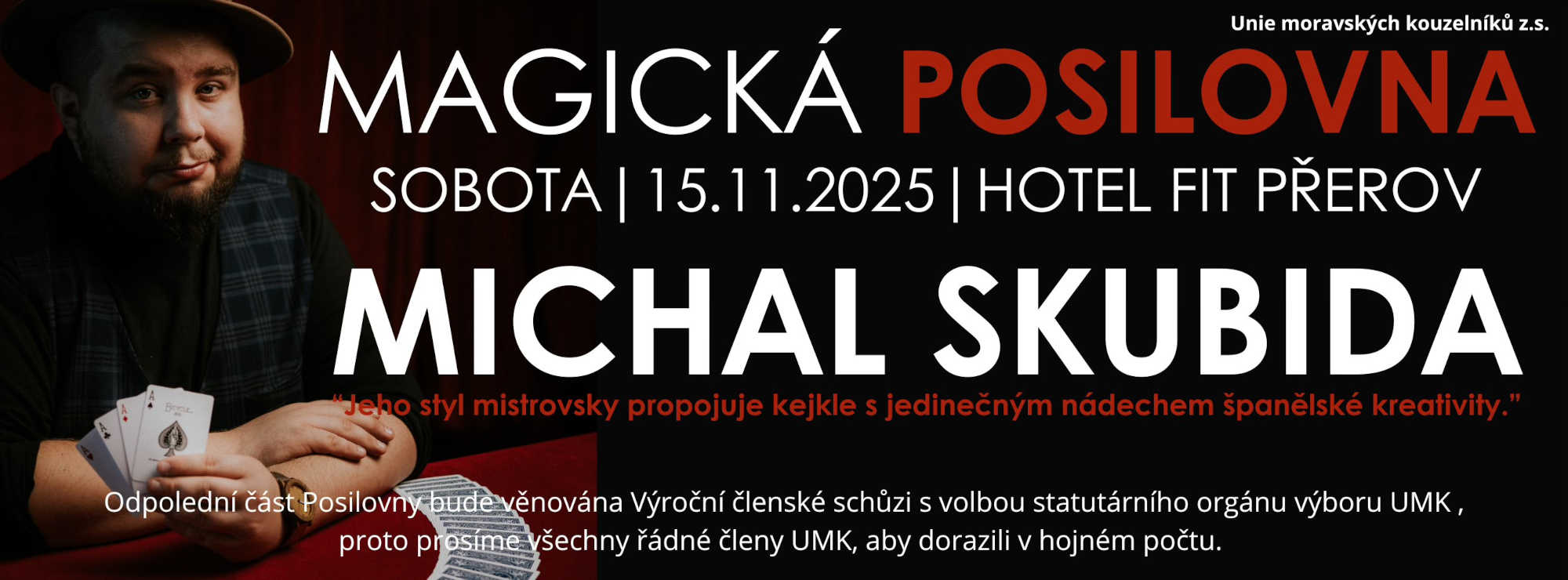 Unie moravských kouzelníků zve všechny přátele moderní magie na tradiční podzimní magickou Posilovnu do Přerova. Nezapomeňte, že kouzelné setkání začíná již v pátek tzv. Předposilovnou.